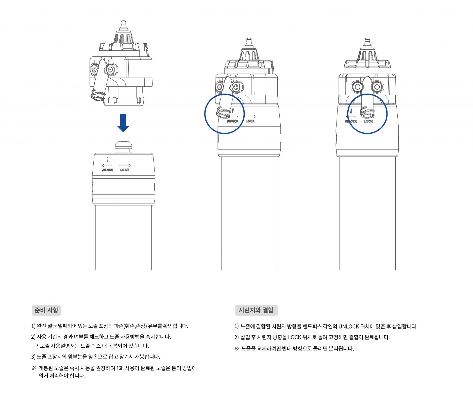노즐 박스 내 동봉된 노즐 사용 설명서를 숙지해주세요.